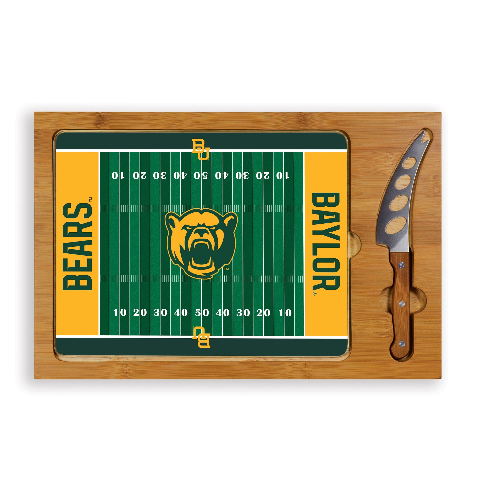 Baylor Bears Football Field - Icon Glass Top Cutting Board & Knife Set