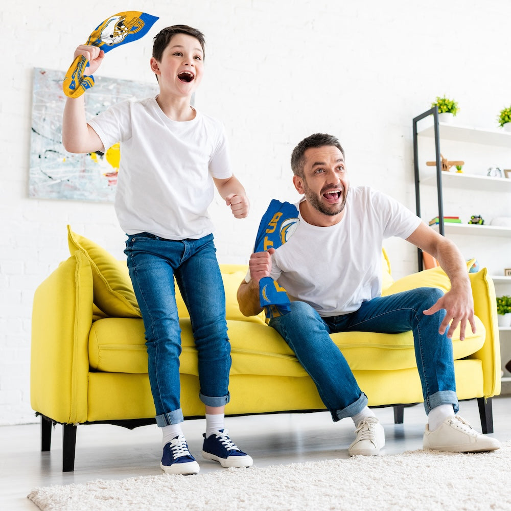 The Ultimate Fan Towel is here! The Los Angeles Chargers Play Action fan towel set lets you rally your favorite team whether you are at the stadium, or cheering on from home. Each fan towel displays the Los Angeles Chargers name, team colors and their slogan on separate, contrasting, 16 by 25 inch towels that let 2 people share in the action, or let the biggest fans double fist their team pride! These towels are designed to withstand every score, defensive stand, or victory dance - and come back for more. When not watching the game, they look good enough to be displayed in your Fan Cave!