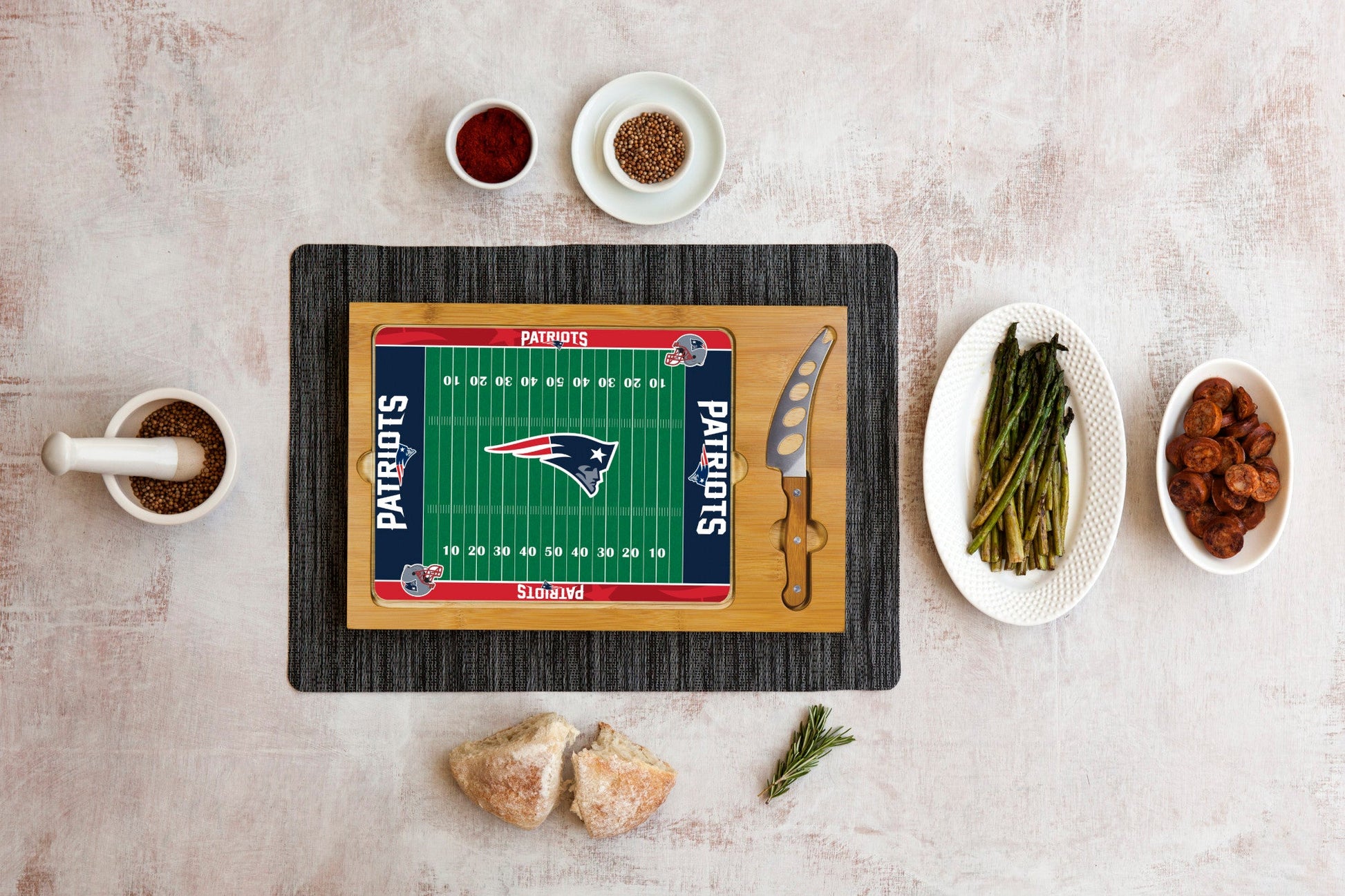 New England Patriots Football Field - Icon Glass Top Cutting Board & Knife Set