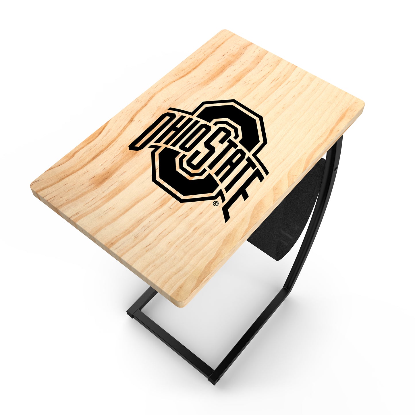 Add a touch of flair to your living room or Fan Cave with this Ohio State Buckeyes Laser Etched Logo ANYWHERE accessory table! These stylish wood accent tables boast a modern C-shape design. Its clever construction allows you to slide it effortlessly under your couch or chair, creating an easy-to-use surface for your laptop, tablet, or game-day snacks, and the cloth storage area under the table provides extra storage for magazines, newspapers, or other accessories. Whether catching up on work, enjoying a movie night, or cheering on your team, this versatile Ohio State Buckeyes ANYWHERE table has you covered.