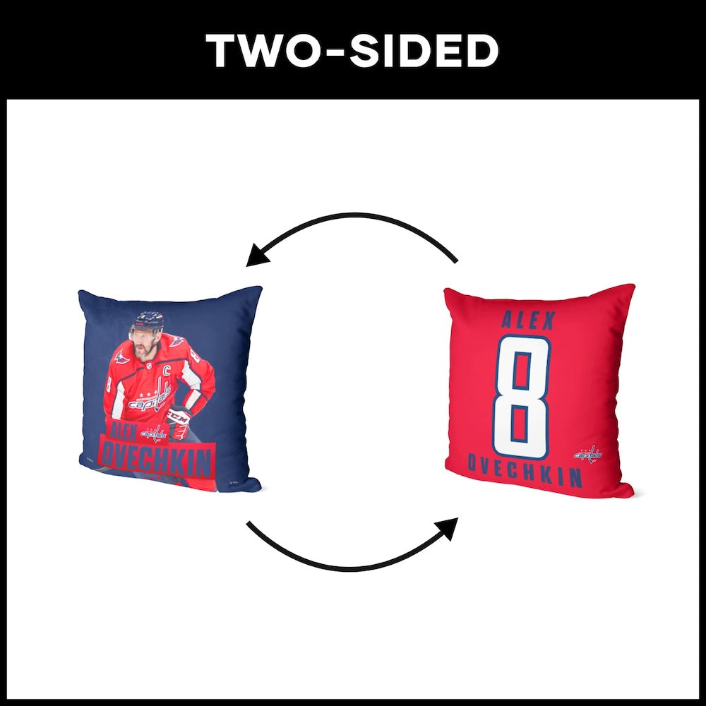Bring your passion for the Washington Capitals into your home with our officially Licensed NHL Washington Capitals Alex Ovechkin Double-Sided 18 by 18 inch Decorative Pillow. You will feel like you are on the field as you snuggle up to this soft and comfortable pillow. The front of the pillow features Alex Ovechkin of the Washington Capitals in an action photo, while the back showcases team logo and colors. This pillow is a must-have for any true Sports fan.